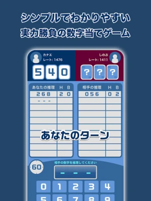 「Hit&Blow」は、数字の並びを推理し合う2人対戦の思考型脳トレゲームです。定番ルールで遠距離の友達や世界中のライバルとオンライン対戦。戦略を練り、頭脳で相手を出し抜く醍醐味を味わえます。