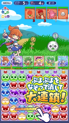 ぷよぷよ!!クエストは、なぞって消すだけの簡単操作で爽快な大連鎖が楽しめるパズルRPG。多彩なキャラクターを育成して自分だけの最強チームを組み、仲間と協力して強敵に挑もう!奥深いやり込み要素も満載。